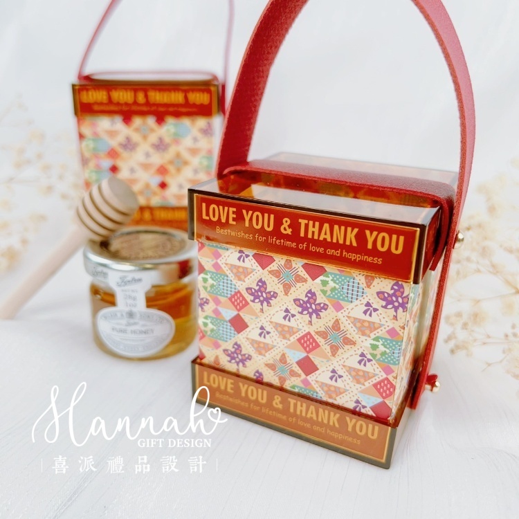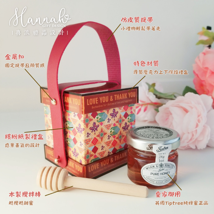 英國Tiptree 蜂蜜喻意「甜甜蜜蜜」絕對是婚禮小物中的TOP5,堅固的壓克力禮盒加上仿皮的提袋,可愛又大方