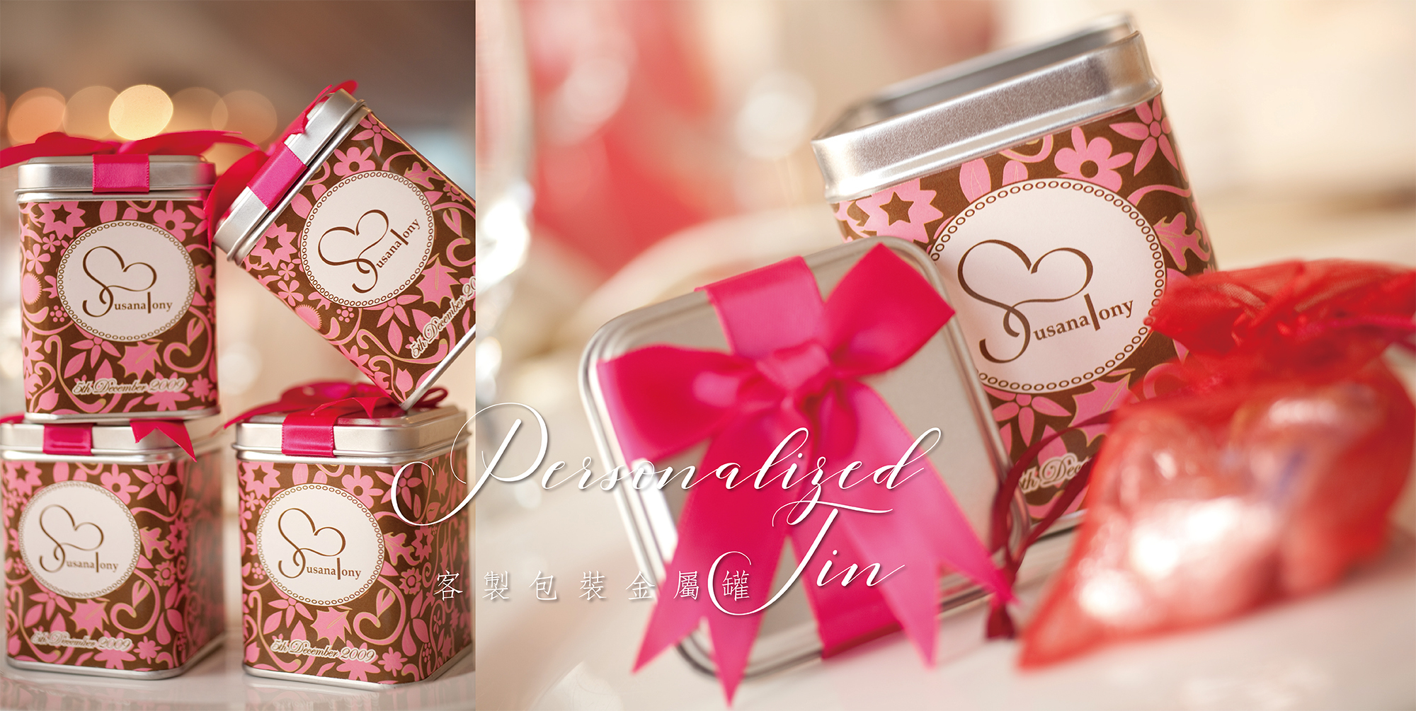金屬罐的包裝紙不但可客製,緞帶都可以有多款選擇,而特別的是它由金屬罐所造成的,至少賓客收到的時間會覺得大體一點。而且準備婚禮小物就是怕他們不要,沒有用途或沒有特色。但是這個金屬罐就可以好好地保存,食完入面的食物後還可以用這個罐放其他小物件,令你可以將各位的祝福及感謝,好好的保存下去喔!