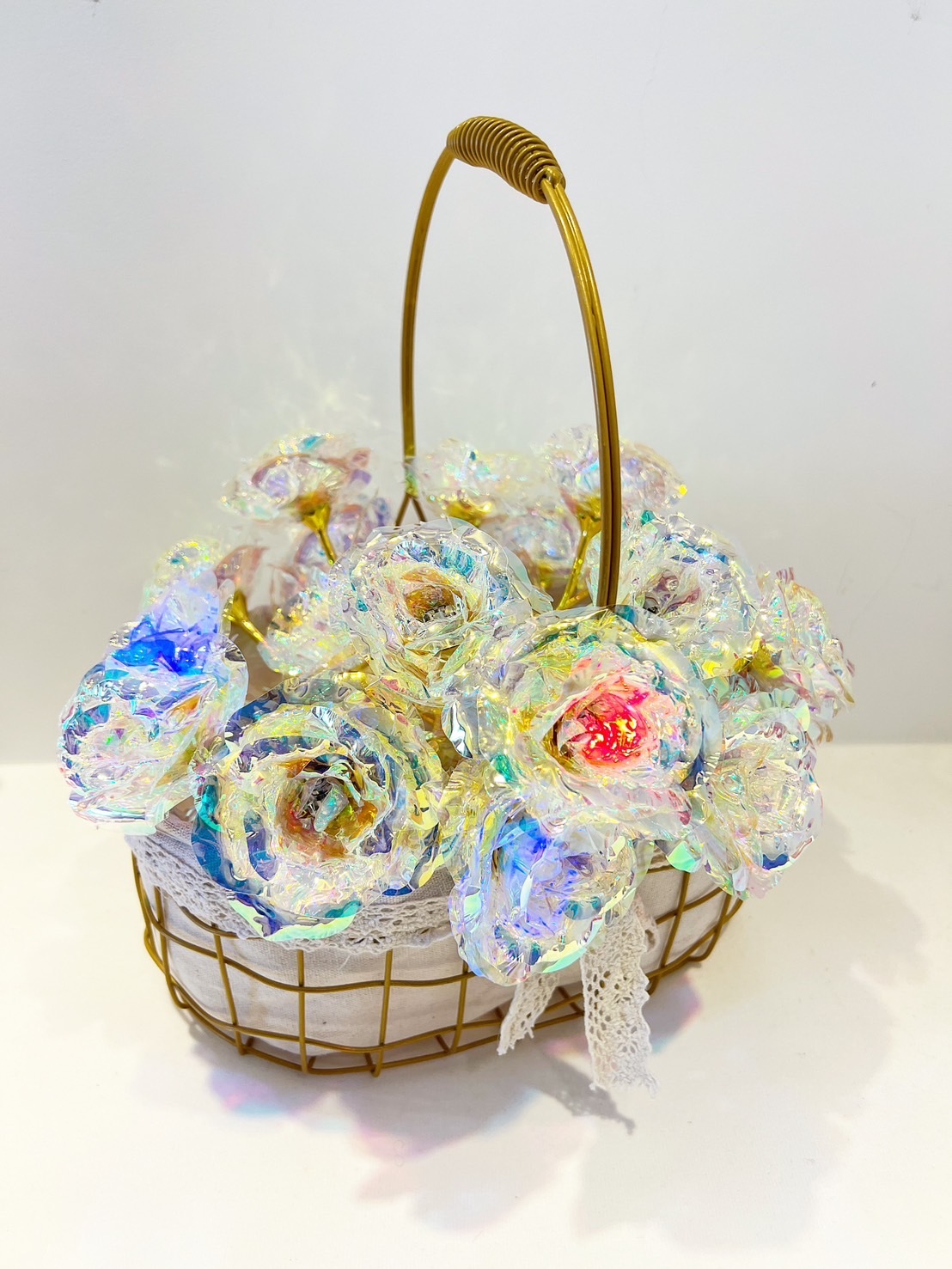「浪漫閃閃玫瑰花束50支套裝」以其絢麗七彩亮片和內藏的LED燈,締造無與倫比的閃耀效果,原本的設計再加上燈光給人以浪漫與夢幻的感受,50支特惠組。二進一起入場,將浪漫傳遞給賓客。