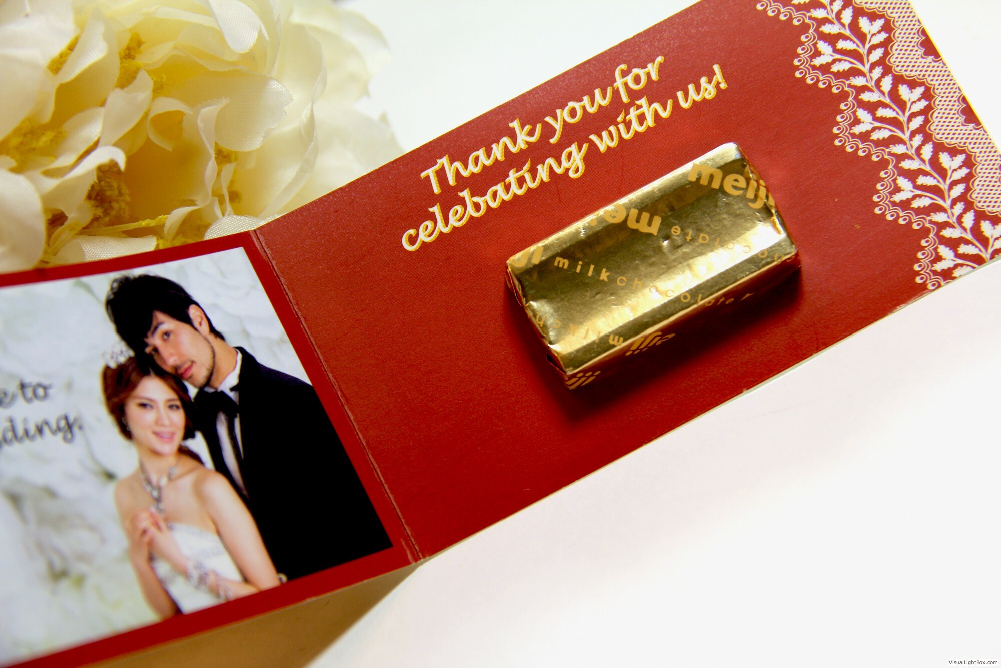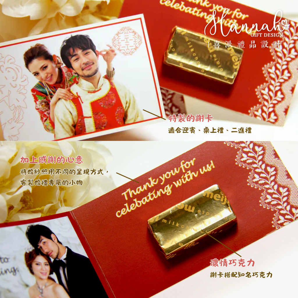結合了精緻的婚紗小卡與 Meiji 巧克力,每一片都透露著無比創意與考究。Meiji 巧克力的甜蜜濃郁,與美麗婚紗卡片的優雅設計完美融合,讓您的婚禮從第一刻起就充滿甜蜜和浪漫的氣息。